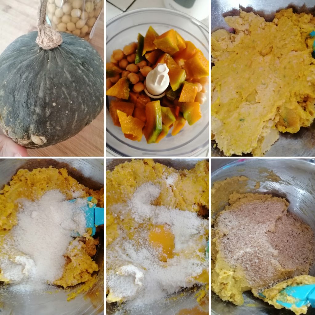 Passos para os bolinhos de abóbora e grão-de-bico