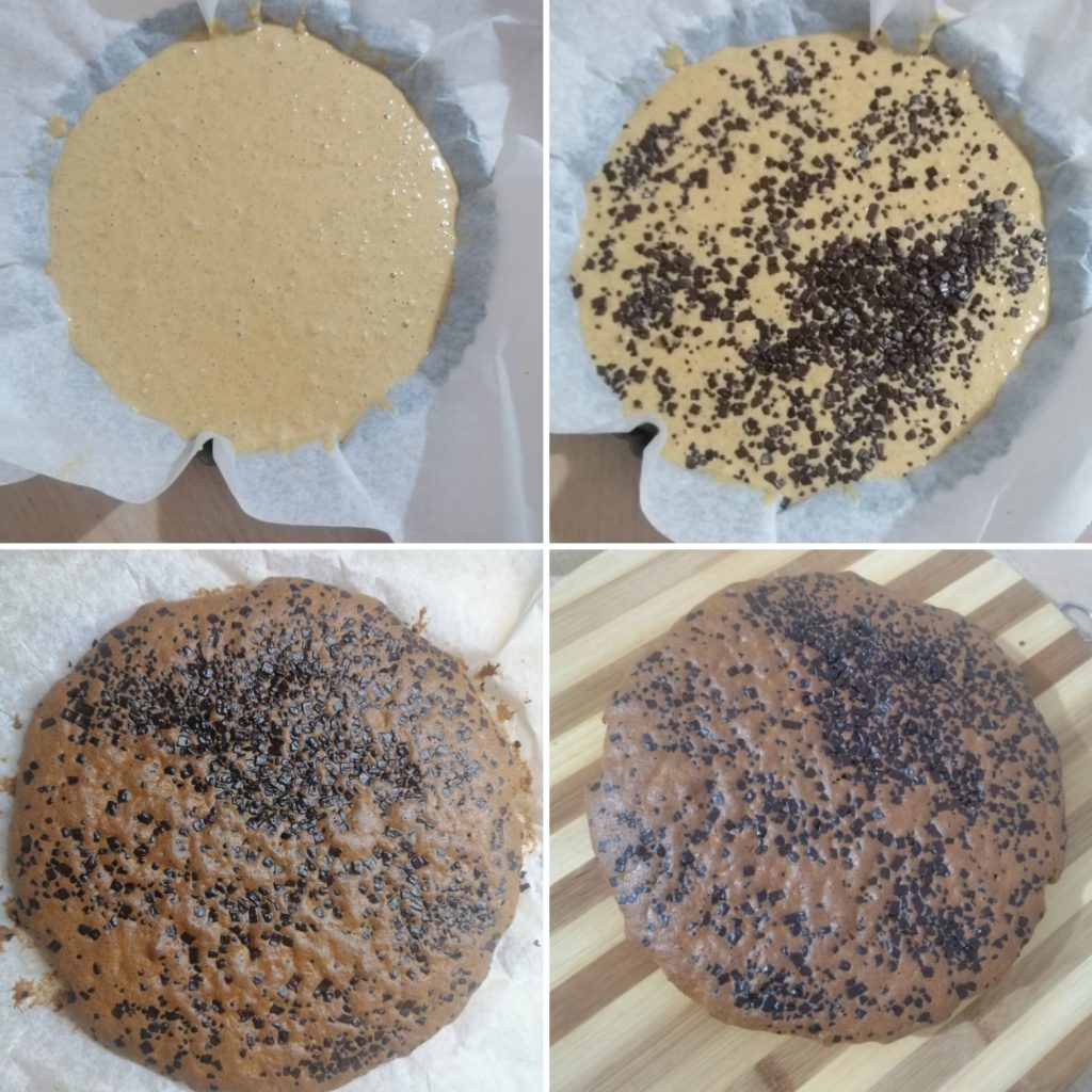 Usei uma forma de 20 cm de diâmetro forrada com papel manteiga.