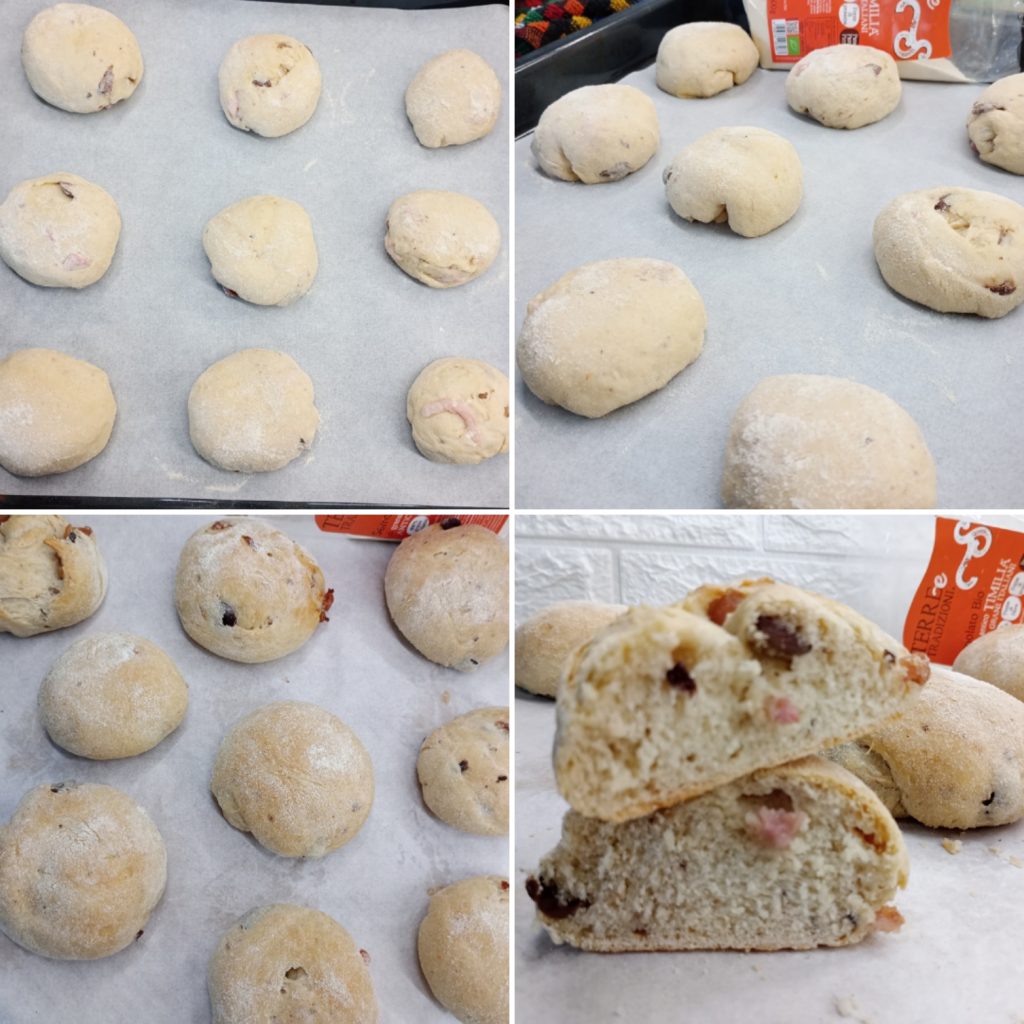 Uma vez assados, deixe-os esfriar completamente sobre uma grade. Seus Pães com azeitonas e guanciale estão prontos para serem saboreados! O aroma do guanciale tostado e a maciez da massa os tornam irresistíveis.