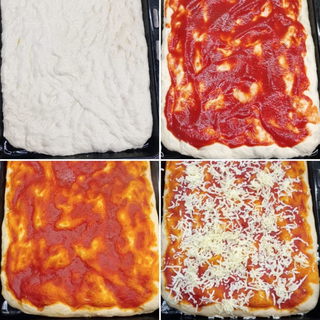• Deixe a massa crescer já esticada na assadeira por mais uma hora.