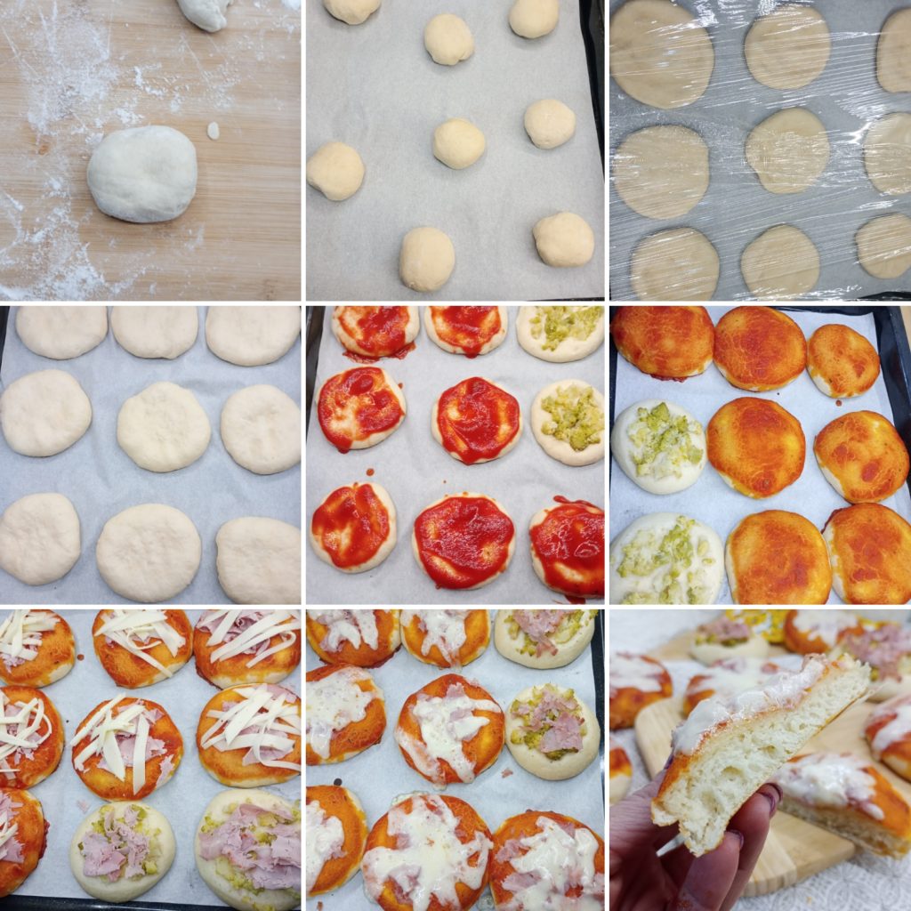 Mas o quanto são boas as pizzinhas? Essas pizzinhas lembram muito aquelas vendidas nos bares e padarias, são macias, altas e fofas como uma nuvem. Perfeitas para um jantar em família ou com amigos, ideais para buffet ou aperitivos. São facilíssimas de preparar, basta respeitar os tempos de fermentação. Para o recheio, você pode se divertir, são boas de todos os jeitos. Venha comigo que começamos logo a bagunçar.