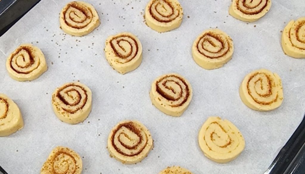 Coloque os rolinhos obtidos em uma forma forrada com papel manteiga, espaçando-os ligeiramente uns dos outros.