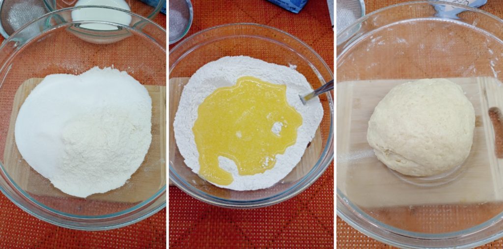 Em uma tigela separada, misture bem o ovo inteiro com o leite e o óleo. Adicione gradualmente os ingredientes líquidos aos secos e trabalhe a massa até obter uma massa homogênea e macia.