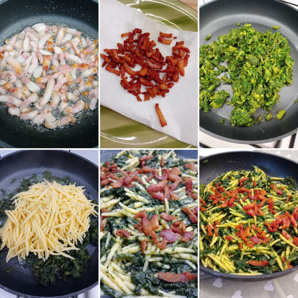 Ingredientes para as trofie com folhas de nabo e guanciale
