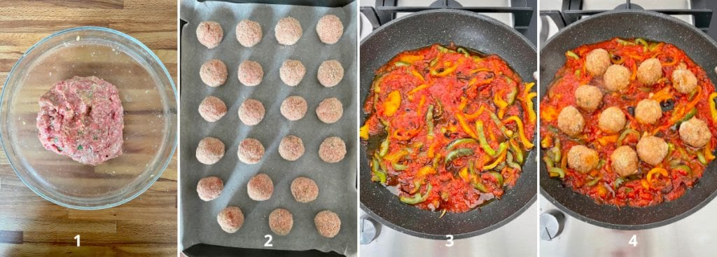 Por fim, adicione as almôndegas (4) e deixe-as apurar no molhinho por mais 7-8 minutos, virando-as delicadamente.