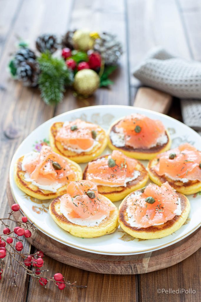 Os blinis são pequenas panquecas salgadas, fofas e macias, de origem russa. Agora estão difundidos em todo o mundo e podem ser acompanhados com peixe defumado, caviar, frios ou vegetais, junto com creme azedo ou queijo cremoso. A preparação é muito simples e a cocção é semelhante à dos pancakes, em frigideira quente ligeiramente untada. Experimente os blinis com salmão, são realmente deliciosos e serão perfeitos como entrada, mesmo em ocasiões festivas!