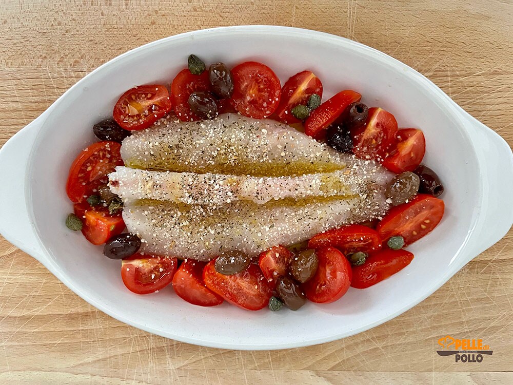 Coloque a assadeira no forno ventilado a 180-185° e asse por cerca de 20 minutos. Os tempos são indicativos, ajuste sempre de acordo com seu forno e o tamanho do peixe.