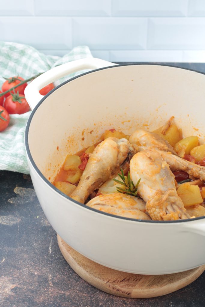 Aqui está a minha versão com e sem batatas do frango à caçadora, simples e saborosa.