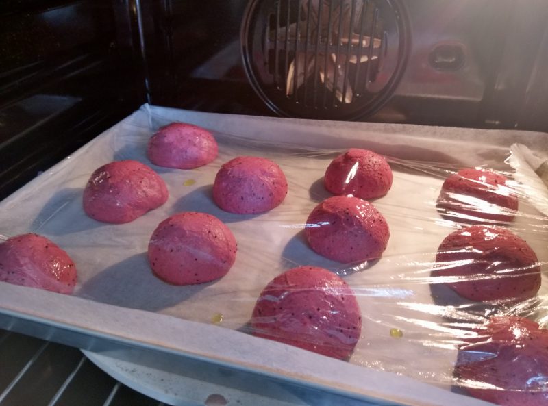 Depois de obter uma massa lisa e homogênea, deixe-a descansar coberta com um pano em uma tigela levemente untada por cerca de 15 minutos, depois faça a primeira dobra. Repita a operação algumas vezes, deixe descansar por 15 minutos, molde e aguarde dobrar de volume. Quando a massa tiver dobrado de volume, vire-a sobre uma superfície enfarinhada e corte em pedaços de cerca de 80 g. Para formar os pãezinhos rosa, faça bolinhas e coloque-as na assadeira bem espaçadas para fermentar até dobrar de volume. Asse em forno pré-aquecido a 200 graus por cerca de 20 minutos. Bom apetite!