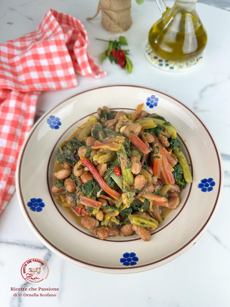 Um delicioso prato único de outono, as acelgas vermelhas ou clássicas com feijão, um prato vegano, fácil de preparar e realmente substancioso, enriquecido com dois croutons de alho será o comfort food de outono e inverno por excelência. Eu amo vegetais e os preparo frequentemente, gosto de juntar legumes com vegetais folhosos, para fazer um prato único substancioso, apreciamos com prazer principalmente no almoço, mas se acontecer no jantar, certamente não desaponta. Pode ser preparado em etapas para que seja fácil e também rápido. Talvez enquanto relaxamos possamos colocar para cozinhar antecipadamente tanto os feijões quanto as acelgas. Os feijões precisam ser deixados de molho por pelo menos 12 horas e têm um tempo de cozimento de mais de uma hora, enquanto as acelgas cozinham em poucos minutos em água fervente, dependendo de quão tenras estão. Uma vez prontas as duas bases, será um instante preparar o prato. Se quiser, pode usar também feijões pré-cozidos, tanto borlotti quanto cannellini ficam ótimos. Vou deixar outras deliciosas receitas com vegetais