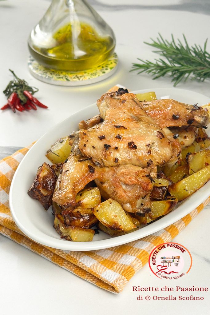 Que delícias são as asas de frango com batatas ao forno, realmente muito fáceis de preparar, saborosas e com um gosto picante, com pimenta calabresa em pó, como manda a tradição calabresa. Preparar as asinhas de frango assadas com batatas ao forno é realmente muito simples, tempera-se tudo na tigela, asas e batatas, e depois de uma boa misturada, tudo é colocado na assadeira, pode ser uma assadeira para pizza, ou uma forma antiaderente, evitamos as travessas, que demoram mais para esquentar. Para um cozimento ótimo, bastam cerca de 40 minutos, teremos asas super macias, com pele crocante, que maravilha exagerada, e carne que se desprende do ossinho em uma única mordida. Então, é mais rápido preparar do que falar sobre isso, vamos para a cozinha.