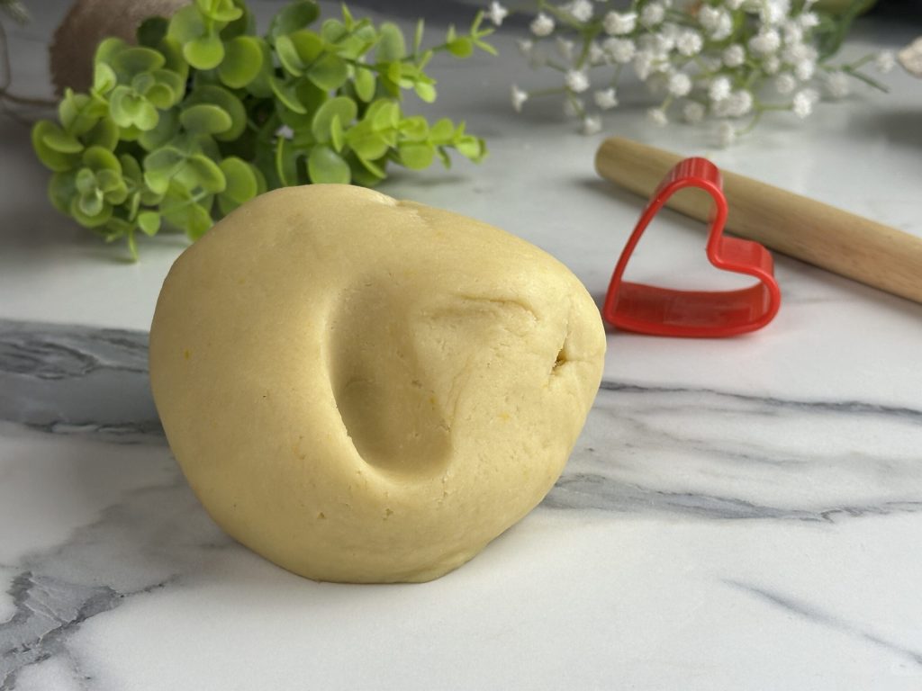 Trabalhamos a manteiga em ponto de pomada à temperatura ambiente, adicionamos o açúcar de confeiteiro e misturamos com uma colher, adicionamos o mel e misturamos. Adicionamos então os aromas e os 2 ovos, misturamos para incorporar os ovos. Finalmente, adicionamos a farinha e trabalhamos até obter uma massa macia, podemos usar um pouco de farinha para finalizar a massa, sem exagerar, caso contrário, passamos diretamente para a geladeira e deixamos endurecer.