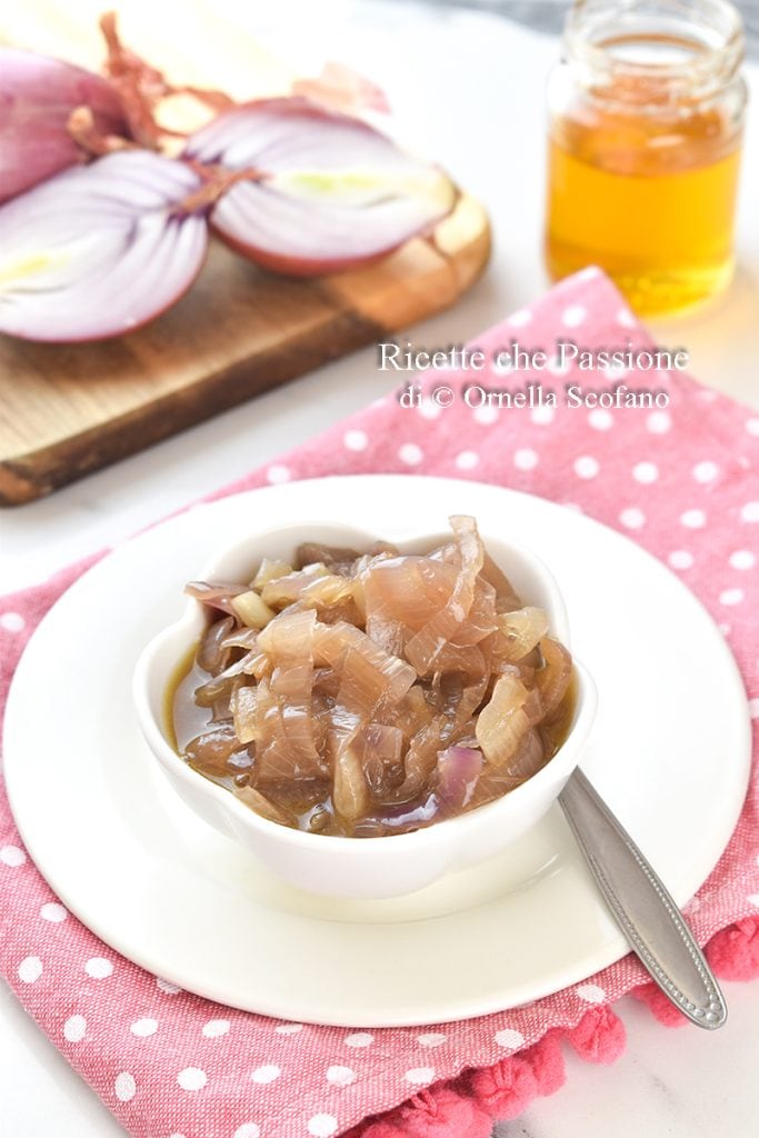 Cebolas de Tropea caramelizadas, com mel e vinho moscato, uma receitinha deliciosa para uma preparação muito versátil, de fato pode acompanhar tanto entradas quanto pratos principais como acompanhamento, seja de carne ou de peixe.
