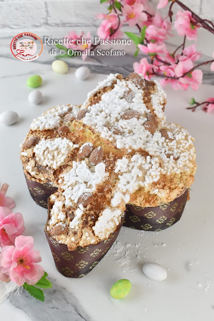 A colomba de Páscoa é um doce fermentado, símbolo por excelência da Páscoa na Itália, coberta com glacê de amêndoas, semelhante ao panetone e ao pandoro no Natal. A Colomba de Páscoa simboliza a paz e a reconciliação, presentear a colomba na Páscoa significa dar um sinal de paz e amor a quem a recebe, uma clara referência à história do dilúvio universal. Quando a chuva terminou, depois de 7 dias, Noé enviou uma pomba para explorar, que retornou à noite trazendo um ramo de oliveira, sinal do perdão de Deus aos homens e, a partir daí, tornou-se símbolo de paz. Um símbolo de paz tão saboroso e macio que na Páscoa se faz grandes banquetes com ele, mas não há nada como o prazer de fazê-lo em casa, com as próprias mãos e criando-o com os sabores que mais amamos, e sim, porque pode ser personalizado, por exemplo, se não gostar de uvas-passas, pode omitir, como eu fiz, ou pode excluir as frutas cristalizadas, ou adicionar gotas de chocolate, ou rechear com cremes deliciosos. Hoje, para vocês, a colomba clássica, um fermentado realmente muito perfumado, com laranja na massa e amêndoas na cobertura. Para a receita, usei fermento natural desidratado com fermento, uma ótima solução para quem não tem fermento natural fresco à disposição, que pode ser encontrado em todos os supermercados. Vamos ver como realizar a receita, e não tenha pressa, as esperas são muito importantes assim como o preparo. Leia aqui minha resenha do forno Indesit que usei para o cozimento.