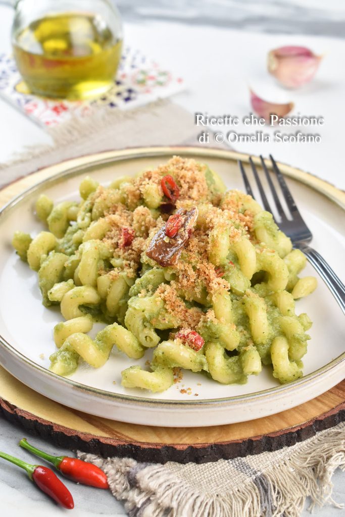 O macarrão com creme de brócolis, anchovas e farinha de rosca é um prato principal típico da gastronomia mediterrânea. Um prato saboroso e fácil de preparar, macarrão com um delicioso creme de vegetais da estação, os brócolis, que em meados de outubro já são encontrados sem dificuldade em várias partes da Itália, podendo ser encontrados do outono até a primavera. Para enriquecer o prato usamos anchovas em conserva de óleo, podemos usar apenas alguns filetes, até 10, se quisermos o prato mais rico e saboroso. As anchovas em conserva, ou simplesmente anchovas, são uma preparação típica da Calábria, permaneceu na tradição fazer estoques, primeiro elas são marinadas em sal, e quando estão prontas são conservadas em óleo para serem degustadas sempre que desejado. Eu sempre ajudava minha mãe a prepará-las, às vezes ela pegava algumas do pote, lavava o sal e temperava na hora, que delícia. Ultimamente eu uso pouco porque meu marido não suporta muito o cheiro forte, na opinião dele, mas se forem bem usadas na cozinha, dão ótimos resultados, e de fato ele devorou este prato de macarrão, que finalizei com farinha de rosca torrada e bastante pimenta fresca porque gostamos muito. Aqui como conservar os pimentas em conserva à moda calabresa.