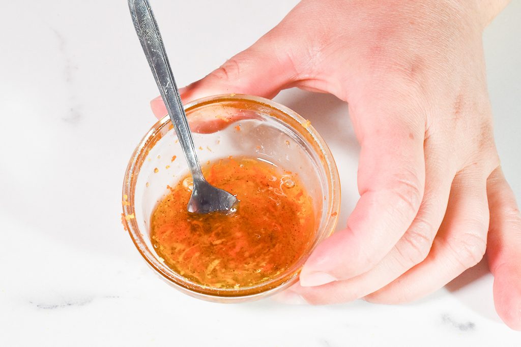 Em uma tigela, colocamos o mel com o aroma de baunilha, raspas de limão e laranja orgânica ralada, misturamos e deixamos descansar até o momento de preparar a massa.