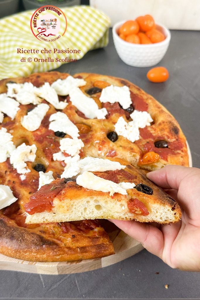 Alerta, você precisa experimentar essa delícia aqui, a pizza de batata com burrata defumada, algo realmente delicioso, eu sei que você está de dieta, mas te juro que não ganha nem um grama se comer duas fatias dessa maravilha, basta depois continuar seguindo seu plano alimentar, e se não está de dieta te asseguro que pode até comer pelo menos metade, mas se conseguir comer tudo, melhor ainda, é uma daquelas coisas tão gostosas que não pode deixar de provar. Trata-se de uma pizza, nascida de uma variação da tradicional focaccia pugliese, coberta com tomatinhos e azeitonas, eu também adiciono tomates pelados, como vi fazer na Apúlia para a pizza barese, e sempre em uma viagem à Apúlia encontrei essa maravilhosa burrata defumada que não pude deixar de levar para casa e decidi colocar nesta pizza macia com massa de batata que, na minha opinião, é realmente especial pelo gosto e textura, depois gosto de prepará-la com borda crocante assim como para a base, mas o interior é um festival de maciez porque a massa com batata é única. Ah, se não encontrar a burrata defumada, pode usar a clássica.
