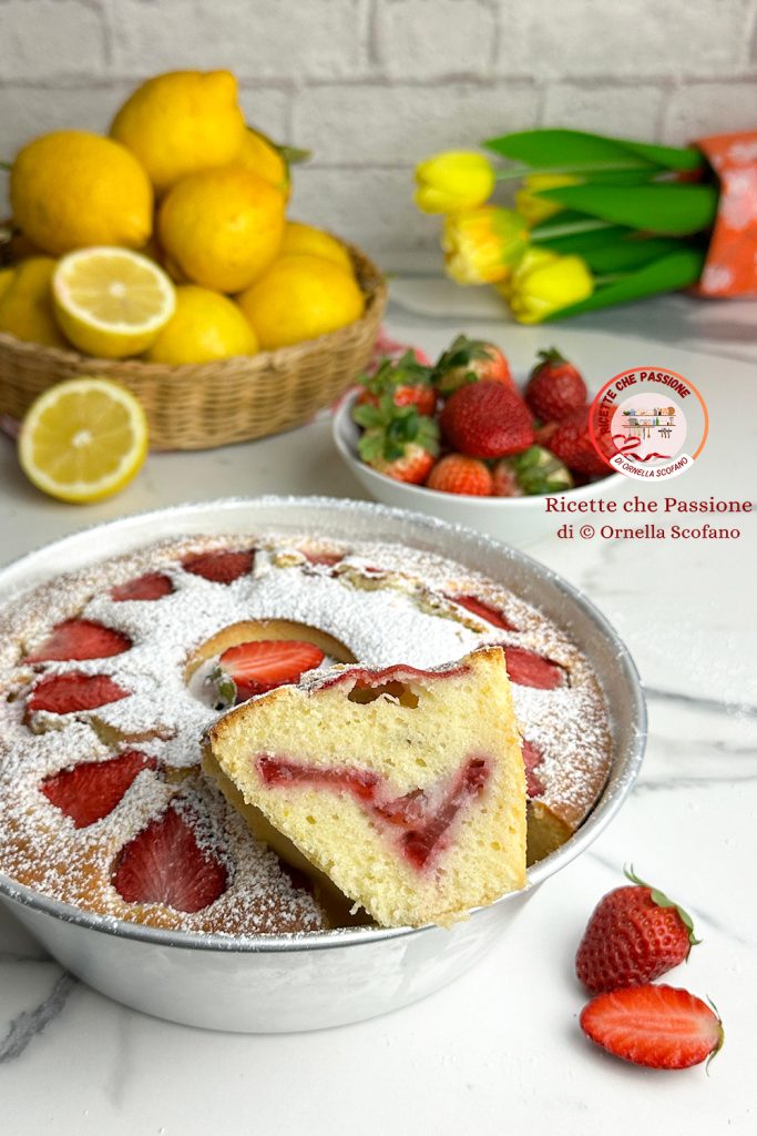 Rosca de morango e limão, um doce fácil e rápido, realmente delicioso, com camadas de morango na massa que o tornam um bolo de fruta suculento, úmido e cremoso, com um perfume agradável dado pelo limão fresco (raspas e suco) e pelos morangos frescos, que ao assarem liberam seu aroma para o bolo, tornando-o realmente sublime. A rosca de morango e limão é o doce perfeito para servir no café da manhã, mas também como sobremesa; é gostosa em qualquer momento do dia. Excelente lanche para crianças e jovens, saudável e leve, com ingredientes selecionados por nós, sem conservantes, corantes ou outras substâncias que, a longo prazo, podem ser prejudiciais ao nosso organismo. Reduzi a quantidade de açúcar ao essencial para obter um doce equilibrado, não excessivamente rico em açúcares e calorias.
