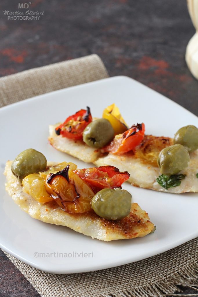 Os filés de merluza com tomatinhos e azeitonas são um segundo prato de peixe saboroso e irresistível. Os filés de merluza são assados no forno, ou na airfryer, com a adição de salsinha e farinha de rosca; esta última cria a crosta certa e deixa o prato crocante. Esta receita é adequada para todos, inclusive para celíacos, pois usei farinha de rosca sem glúten.