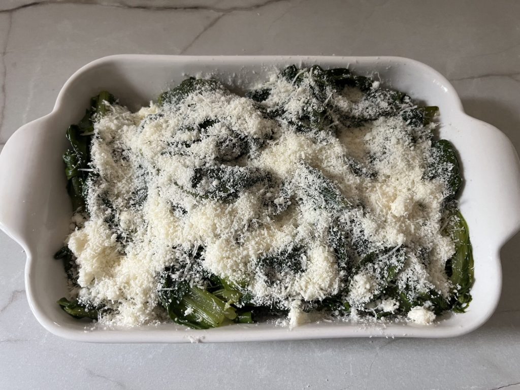 Nesta receita de acelgas assadas, as folhas verdes são primeiro escaldadas e depois levadas ao forno com uma crosta deliciosa de parmesão que, ao assar, fica dourada e irresistível.