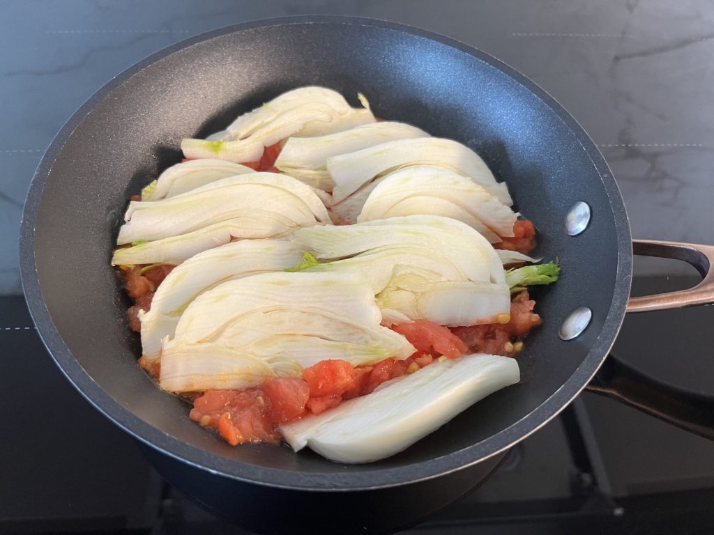 Passos para a erva-doce à pizzaiola na frigideira