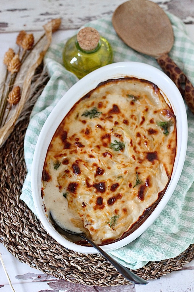 Os funchos gratinados no forno cremosos se conservam na geladeira por dois dias.