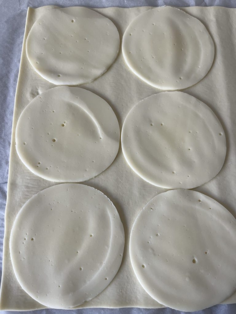 • Estenda a massa folhada e recheie com uma camada de queijo a pasta filante.