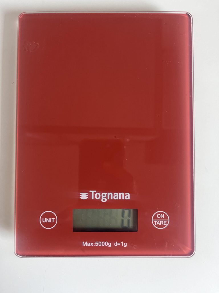 Enquanto isso, pese com a prática balança da tognana, as amêndoas e o parmesão cortado em pedaços.