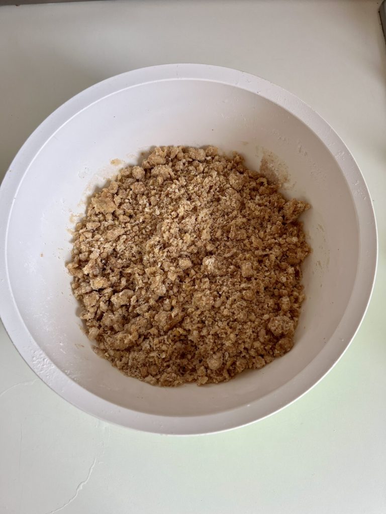 Por fim, acrescente o restante da massa, sempre esfarelada, cobrindo completamente o recheio. Termine assando em forno a 170°C por cerca de 30 minutos. Após o cozimento, deixe esfriar e sirva…