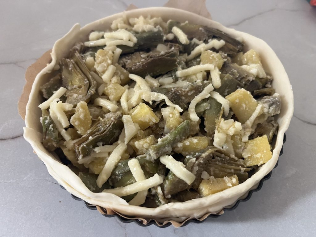 Torta de alcachofras e batatas na airfryer, receita imperdível.