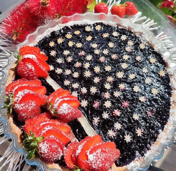 Os mirtilos e morangos estão entre minhas frutas favoritas e por isso me mimei assim… com uma rica torta de mirtilos, que compete com a minha torta de frutas .