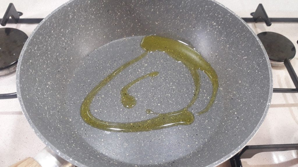 Coloque um fio de azeite em uma frigideira antiaderente e deixe aquecer.