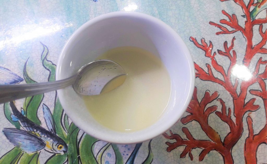 • Enquanto isso, em uma tigela, misture o vinagre com o adoçante ou mel.