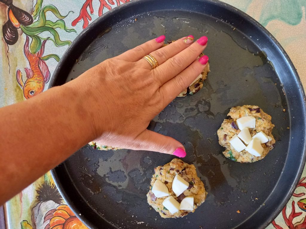 Adequados para os nossos jovens que não gostam de vegetais, e por isso, na parte superior, dei um toque mais suculento, a tal ponto que se parecem com mini-pizzas.