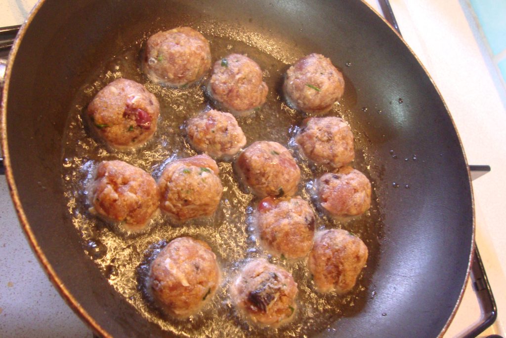 • Agora, em uma frigideira, adicione óleo de sementes e frite as almôndegas, cerca de 1 minuto de cada lado.
