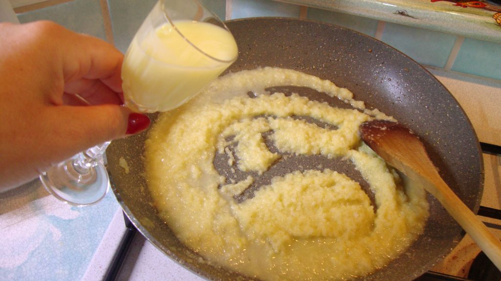 • Despeje a mistura novamente na panela e adicione 1 cálice de creme de limoncello, misture