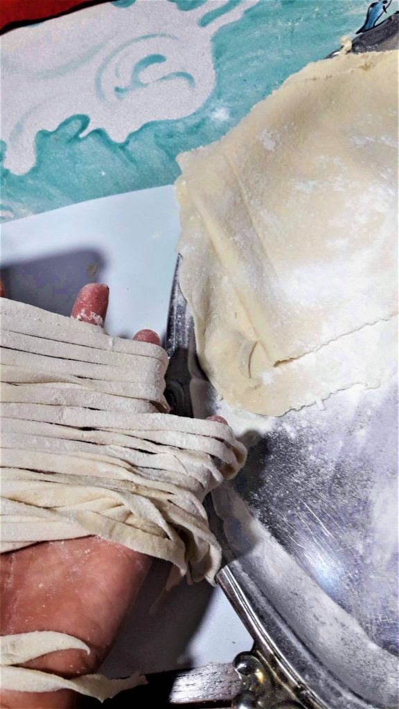 Agora que está tudo liso, troque a parte da máquina e corte o talharim.