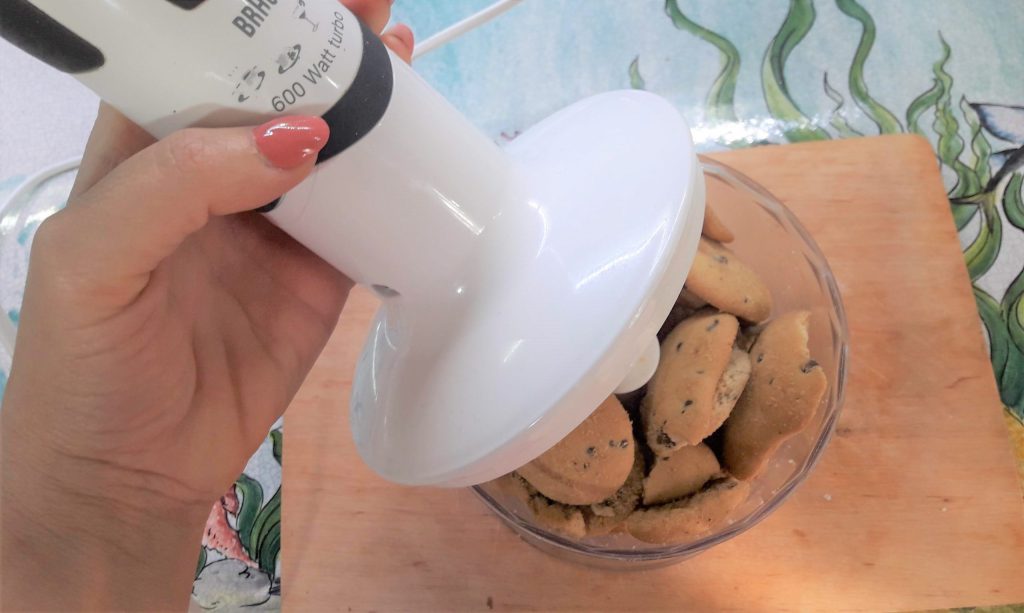 • Triture os tubos dos canolos e os biscoitos no mixer.