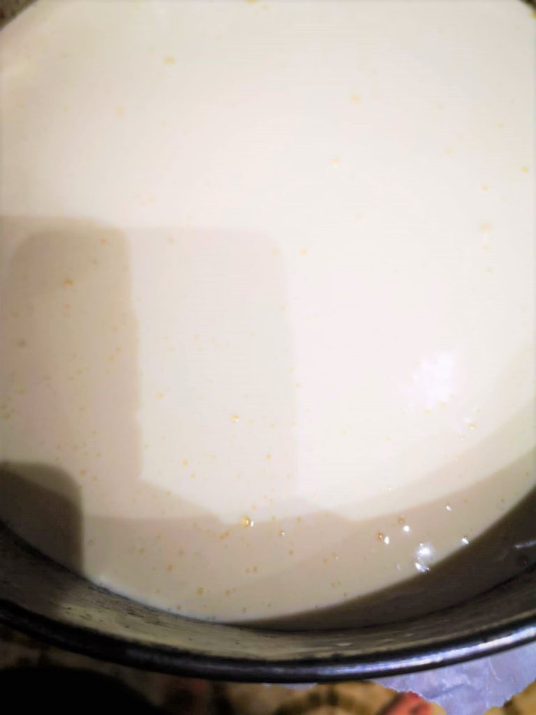 • Coloque as folhas de gelatina na água fria, quando ficarem macias, esprema-as e dissolva-as no leite quente.