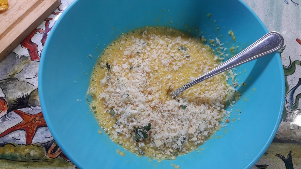 - 100 g farinha de rosca (condimentada à siciliana veja receita)