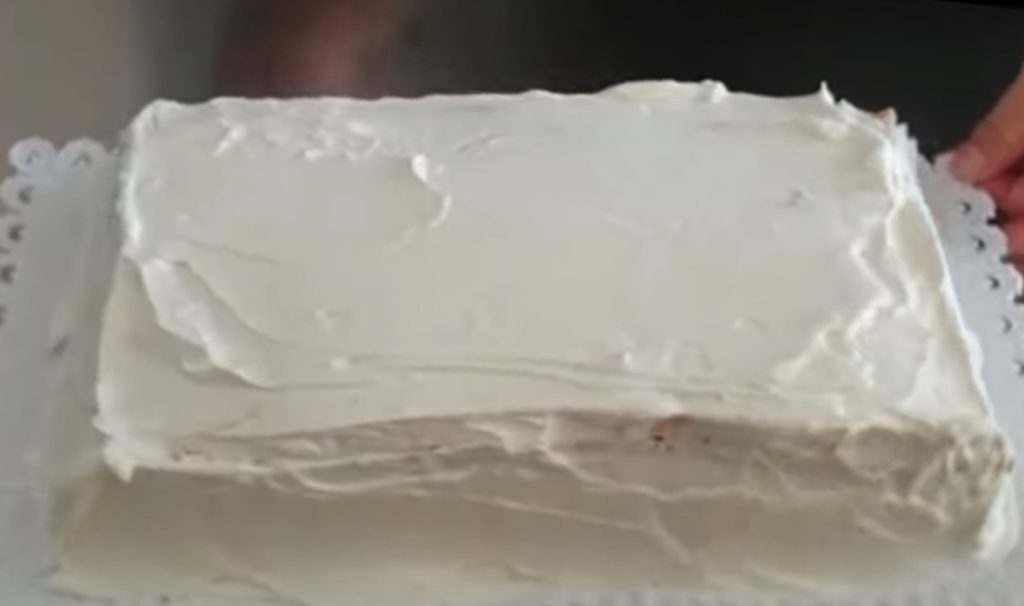 então com uma faca de lâmina longa tente espalhar bem o creme, apoie a lâmina no centro e pressione, dando uma linha que lembra um livro aberto.