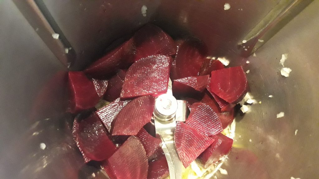 • Adicionar a acelga vermelha e 30 g de azeite de oliva extravirgem e cozinhar por 3 minutos a 120° vel. 1