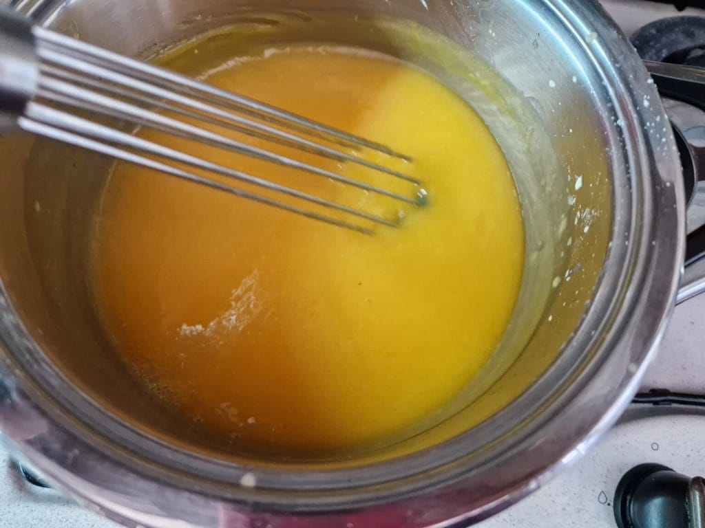 Neste ponto, coloque a panela no fogo e leve para ferver, mexendo continuamente até obter um creme de consistência gelatinosa e transparente.