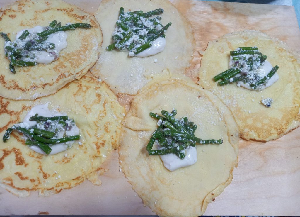 Prato delicioso de sabor delicado, mas ao mesmo tempo nutritivo. O sabor forte dos aspargos se encontra com a delicadeza e leveza da ricota, tudo envolto pelas crepes que são então cobertas pelo molho bechamel.