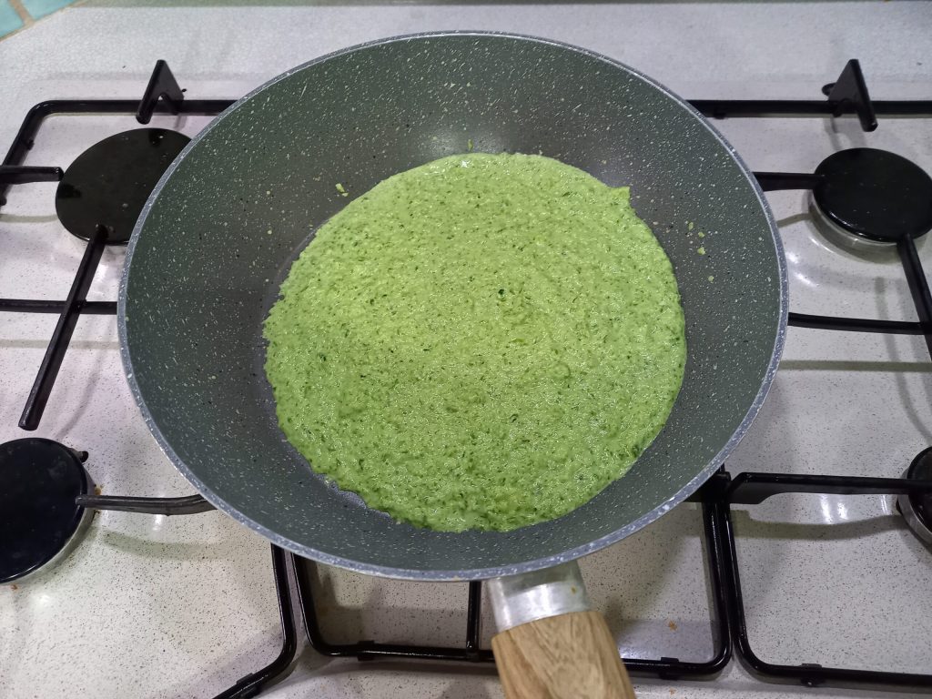 Adicione no copo o queijo cremoso e o Parmesão Reggiano ralado, bata: 40 seg./vel. 8. Transfira o creme de aspargos para uma frigideira.