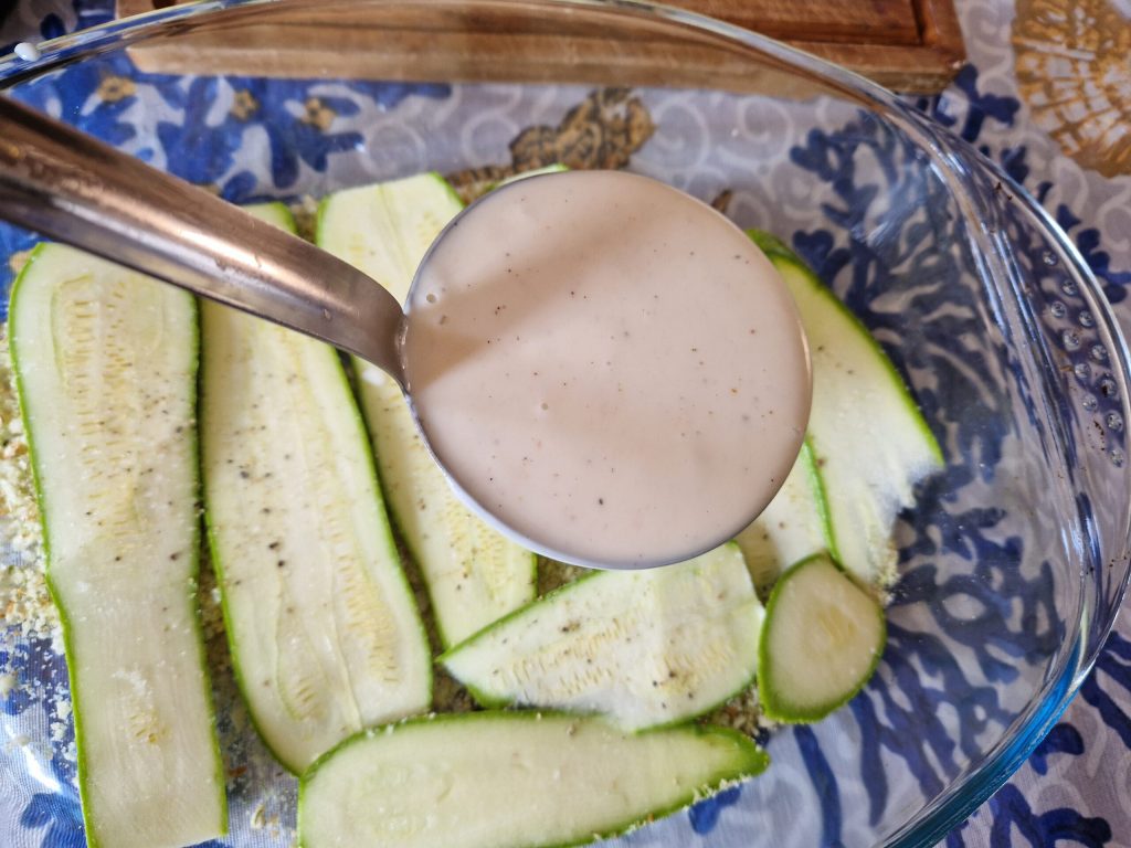 O Gratin de abobrinha cremoso e irresistível, é composto por fatias macias de abobrinha alternadas com cubinhos de presunto e mussarela, tudo imerso em um molho bechamel aveludado que, ao forno, se transforma em uma crosta dourada e irresistivelmente derretida. Um prato único e saboroso que conquistará todos.