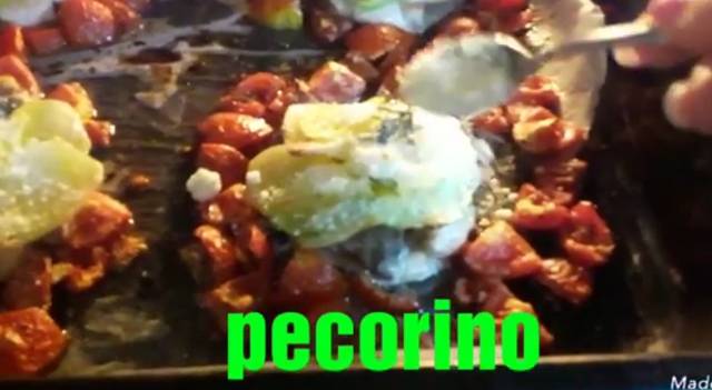 Em seguida, retire a assadeira do forno, polvilhe com pecorino e passe no grill a 200° por 3 minutos