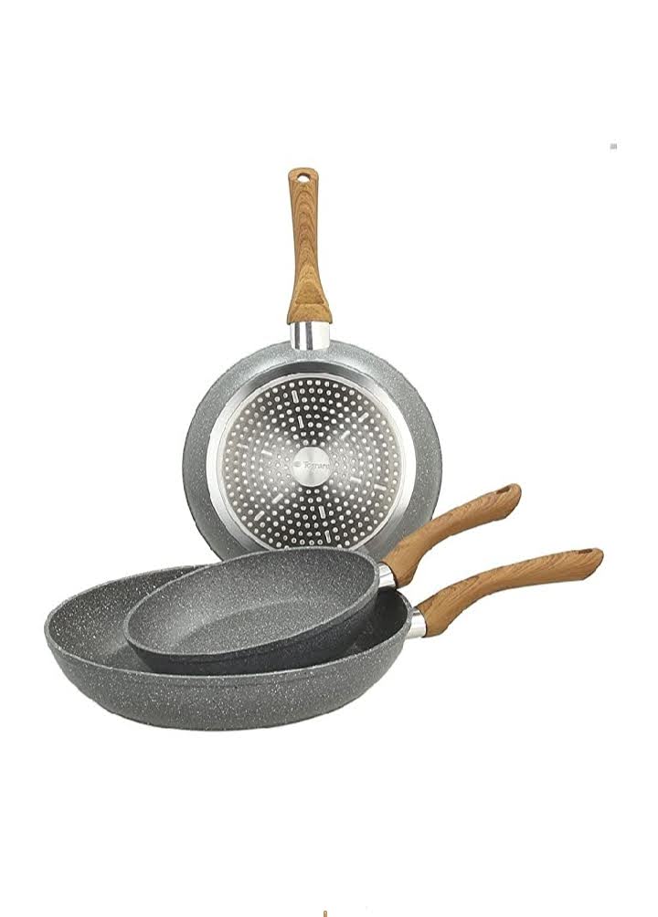 Para fritar bem, recomendo o conjunto de panelas Tognana Stone&Wood Set 3 panelas, Alumínio