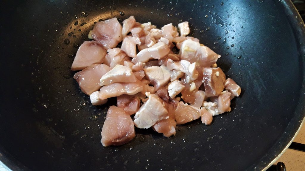Agora em um wok fazemos o clássico alho, óleo e pimenta vermelha.