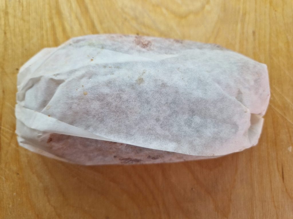 Dobre as bordas do papel manteiga e forme o pacote.